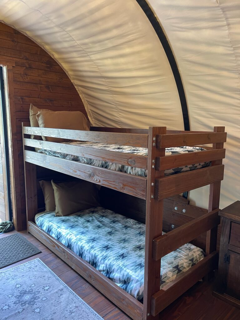 Our wagon may look like it rolled straight out of pioneer days, but inside you’ll find everything you need for a cozy stay. A comfortable bed, thoughtful design, and modern amenities mean you can enjoy the charm of the past without sacrificing today’s conveniences.